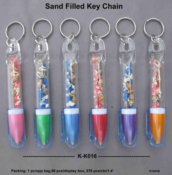 SAND FILLED KEY CHAIN W/ BALL PEN