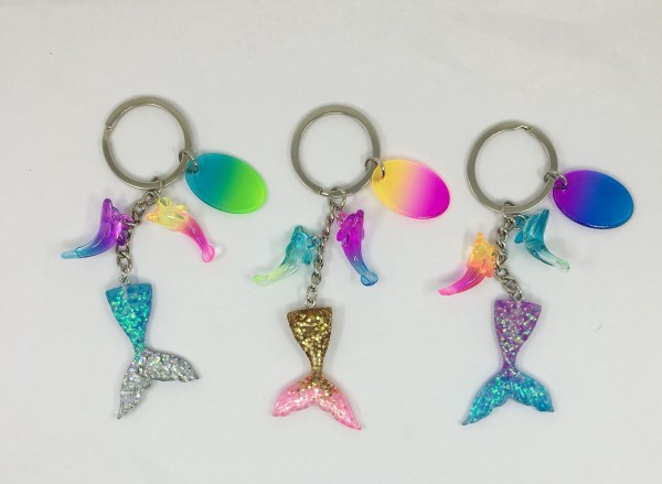 ACRYLIC MERMAID TAIL AND DOLPHIN KEY CHAIN