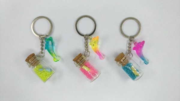 ACRYLIC DOLPHIN KEY CHAIN W/ WISH BOTTLE